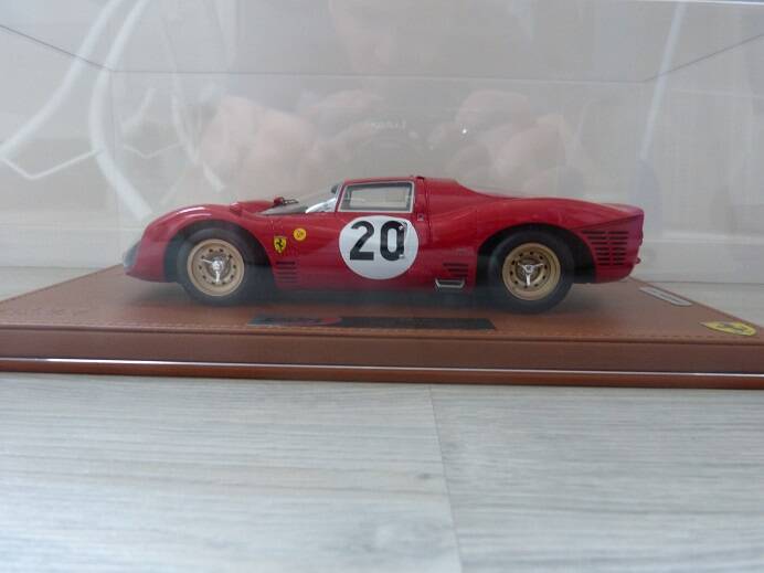 The Ferrari 330 P3 from BBR from 1966. One of the dominant Ferraris from the 1960s which was unbeatable on many circuits. Who does not know the legendary story of Ford making a takeover bid for the relatively small Ferrari, which was rejected by Enzo. Ford could not build a competitive car in America to beat Chevrolet and thought it could achieve this goal by taking over Ferrari. But Ford's revenge was sweet. They have invested millions in the project that was known as the Ferrari killer. With the development of the GT40, Ford finally took a Le Mans victory at the expense of Ferrari in 66 and bought the title. In 1967, Ferrari recorded a 1-2-3 victory at Daytona with the P4 (spiders and Berlinetta's). If ever a model was produced for everything Ferrari stands for, this is it.